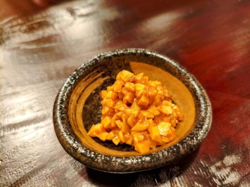 生姜の爽やかな香りとニンニクの力強い風味!大吉の隠れた名物”百万馬力”。がガツンと!その後に味噌の旨味が追いかけてきます。もうこれ美味しくて、、、瓶詰めで別売りで売ってほしい笑