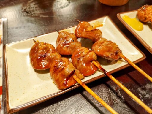 焼き鳥に来たら必ず食べる「こころ(ハツ)」は大吉も美味しかった!!独特のプリッとした弾力のある食感が心地よく、クセが全くなく、非常に上品な味わい。