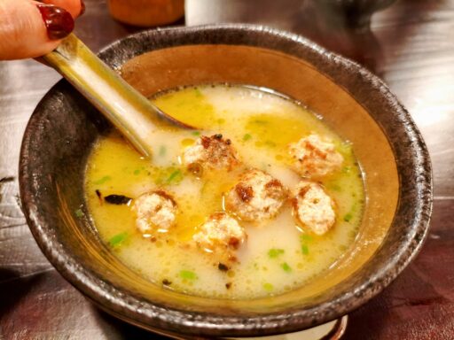 ふんわりと柔らかく仕上げられたつくねから出た鶏の旨味。よく効いた塩気と出汁の香りが絶妙で、お酒を飲んだ後の締めの一杯に。