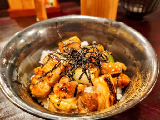 ご飯の上に、自慢のタレがたっぷり絡んだ焼き鳥とねぎまが贅沢に!ががっと丼ぶりをかっこみたい時にも良き。