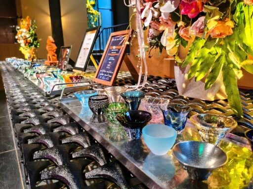 一つ一つ異なるデザインや色彩の酒器は、料理と共に目でも楽しませてくれます。