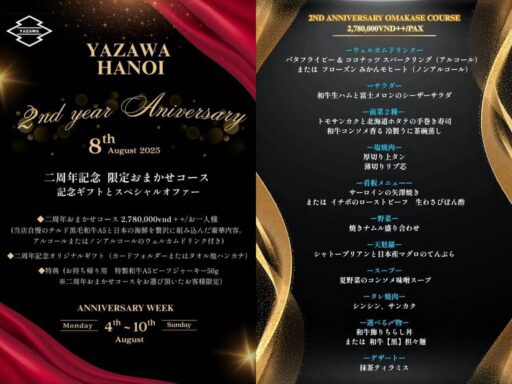 2025年8月8日(金)は『焼肉矢澤』ハノイ店の開店2周年記念日!おめでとうございます~~!!